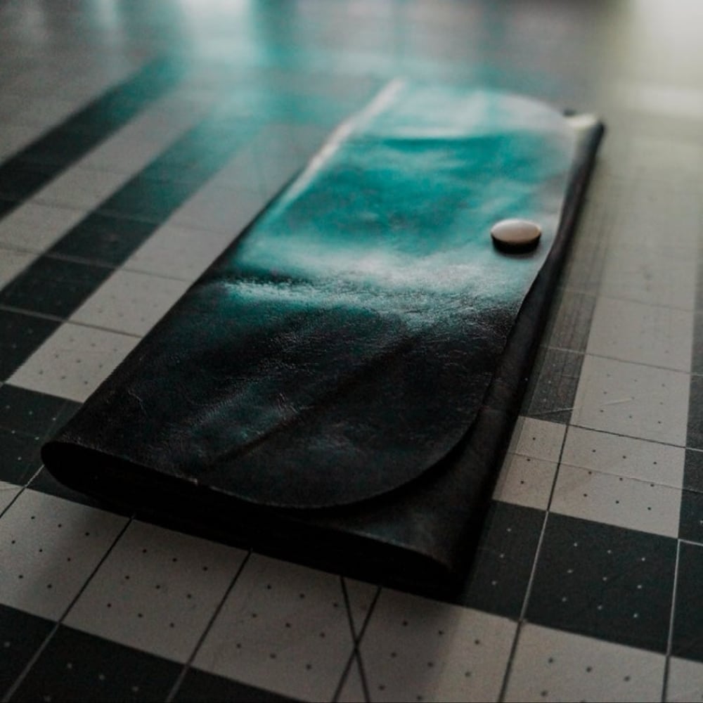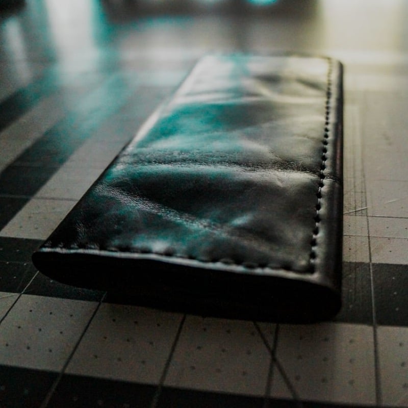A bifold wallet in a dark brown Italian cowhide - fit with space for full length dollar bills and two large card slots.