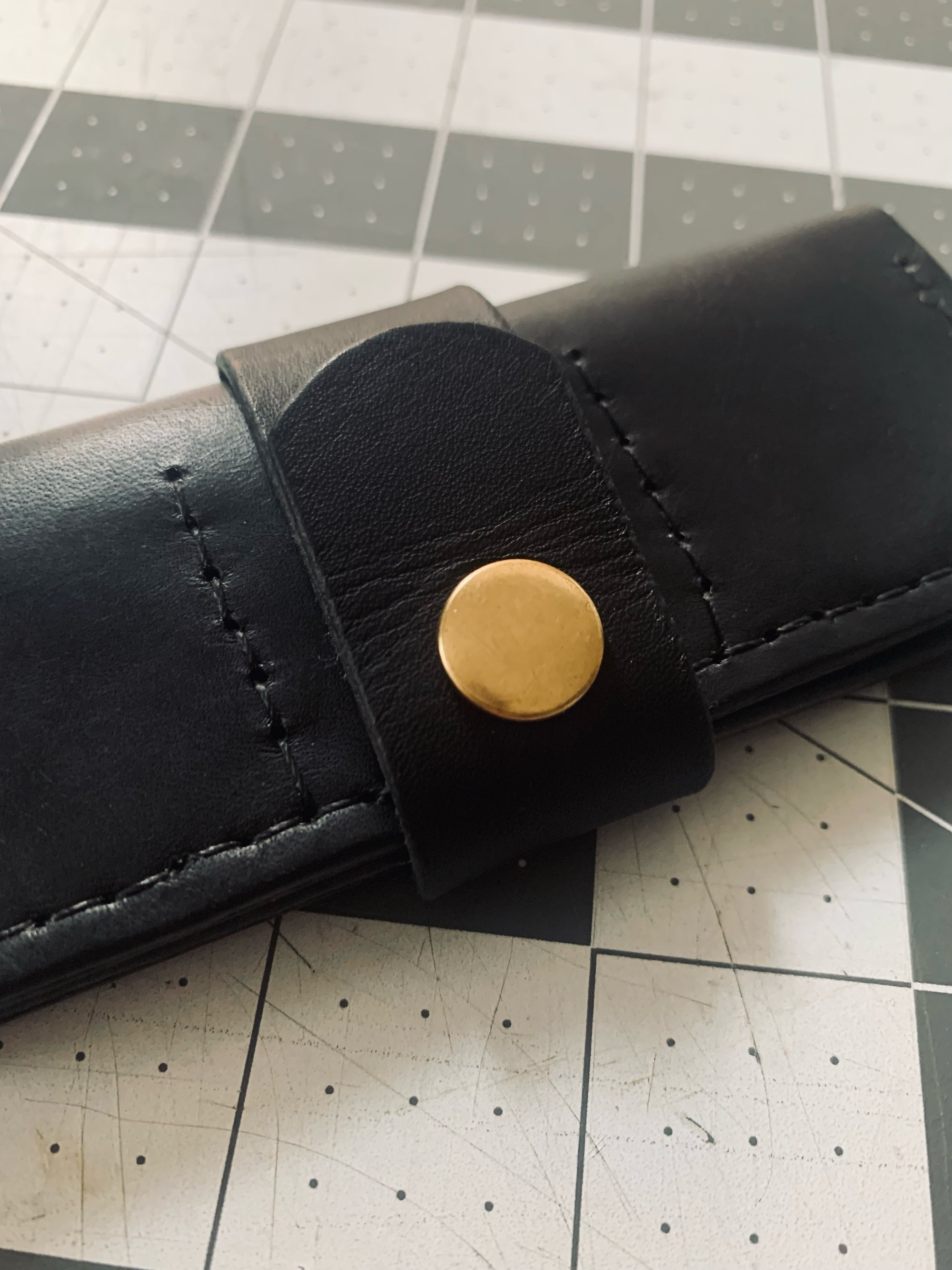 SD Card Wallet fit to carry x6 SD cards. Secured with brass snap enclosure.